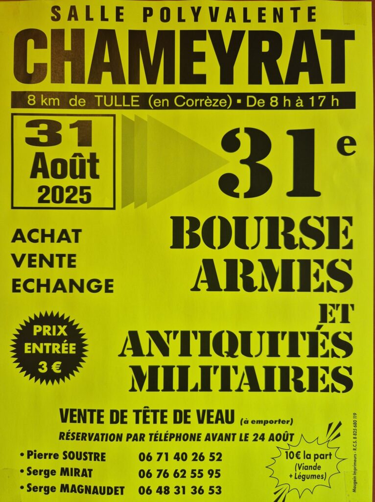 Collectionneurs, amateurs d’histoire ou simples curieux, venez (re)découvrir la traditionnelle Bourse aux armes le dimanche 31 août !